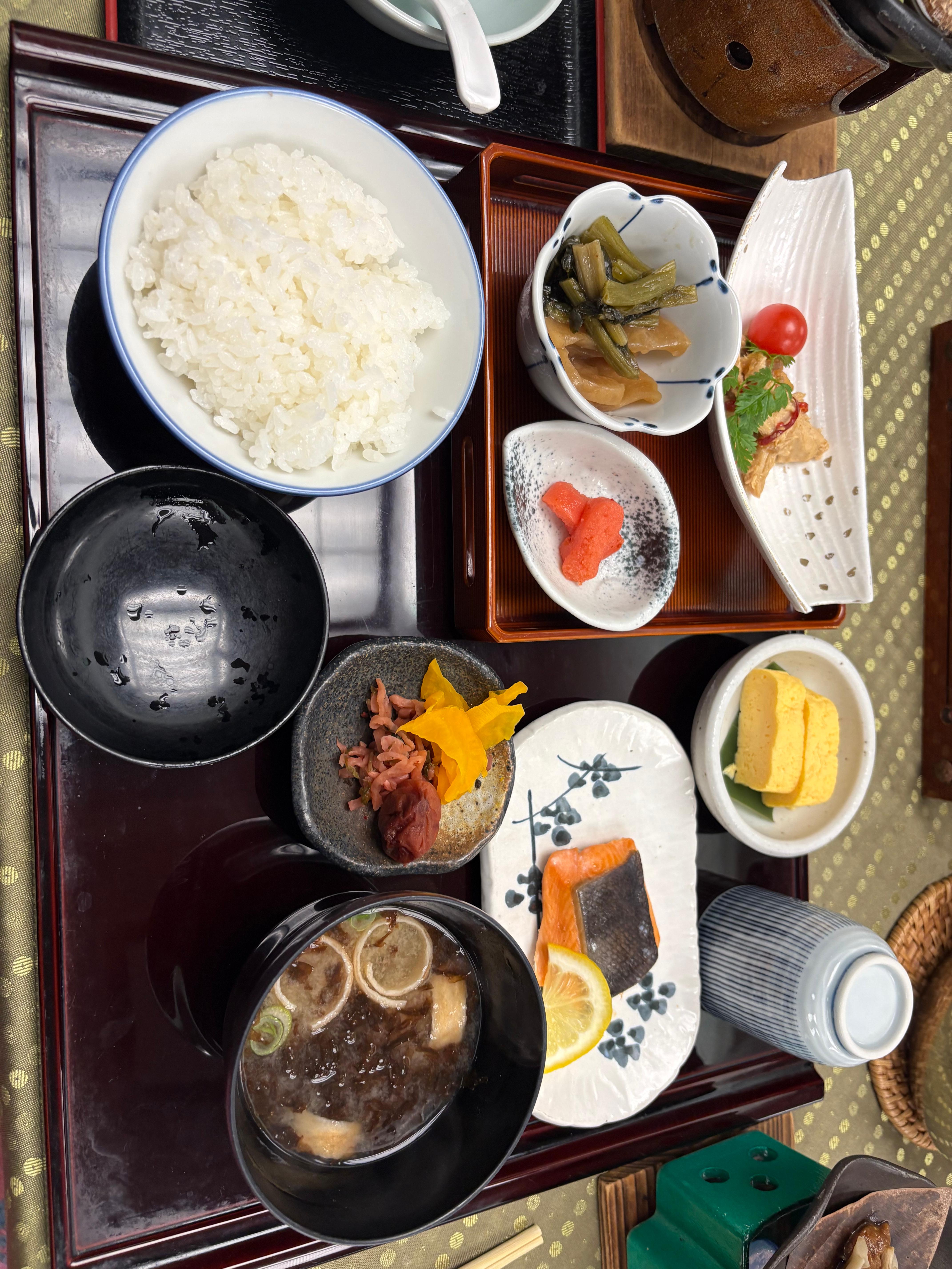 어제저녁도 정말 만족스러웠는데 아침도 정성 가득한 일본 정식이 나왔다!!